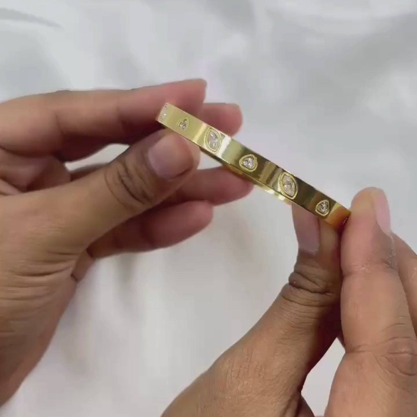 - Design: Minimalist flat-edge kada bracelet designed with alternating round, marquise, and teardrop-cut CZ diamonds embedded across the surface for a modern luxe appeal.