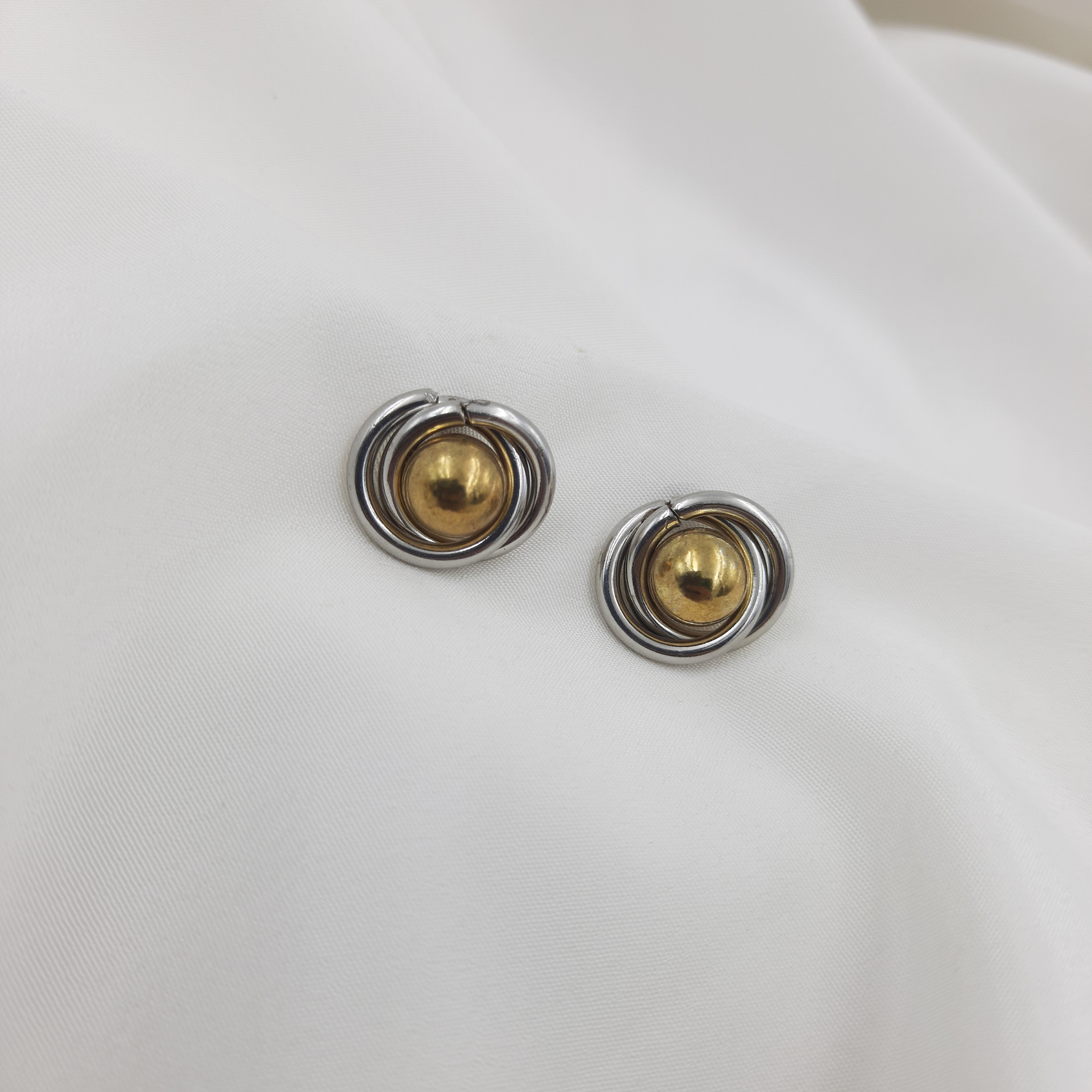 - Design Style: Elegant round spiral studs with a central gold-tone bead.