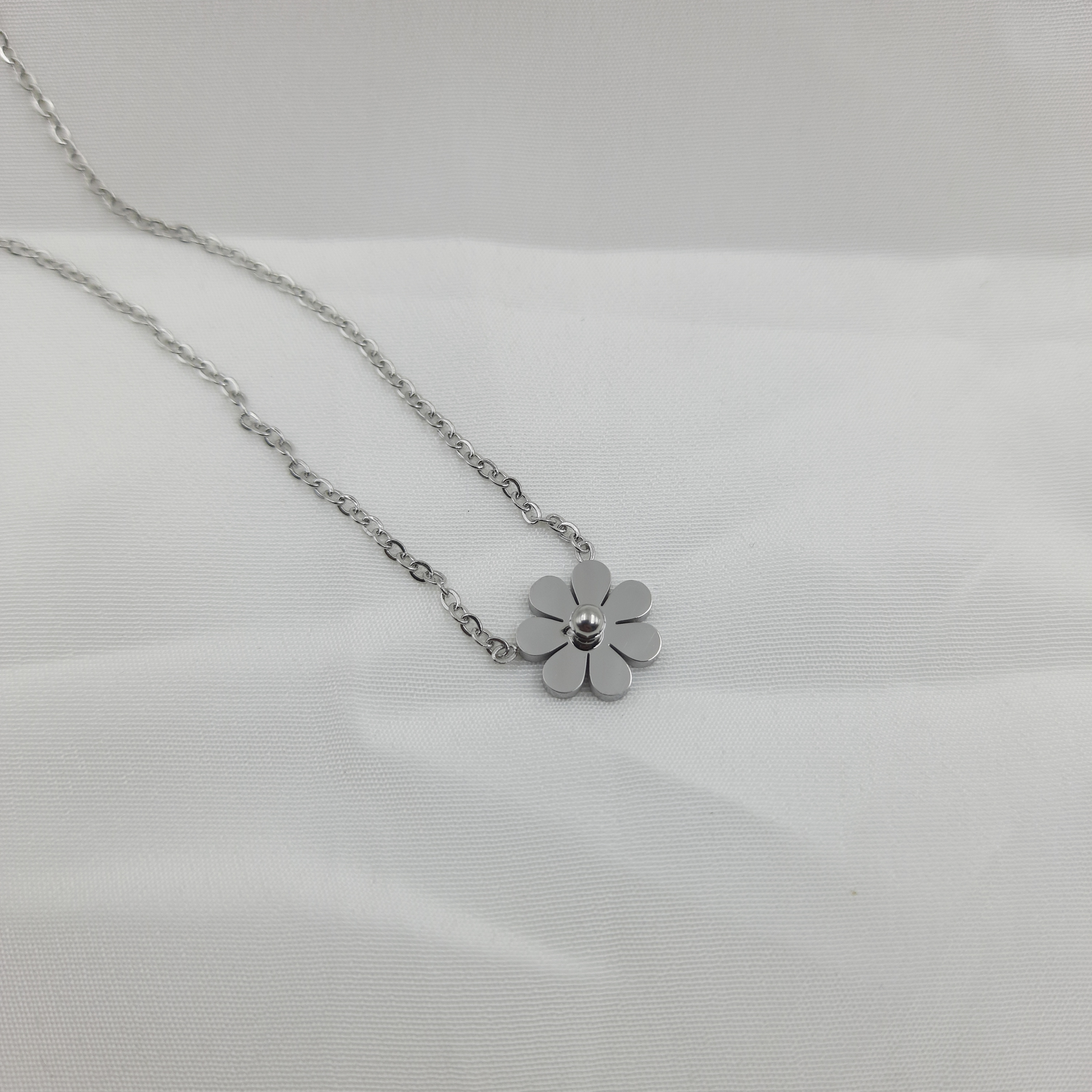 - Design: Delicate daisy flower pendant with a polished center bead and sleek petal detailing.