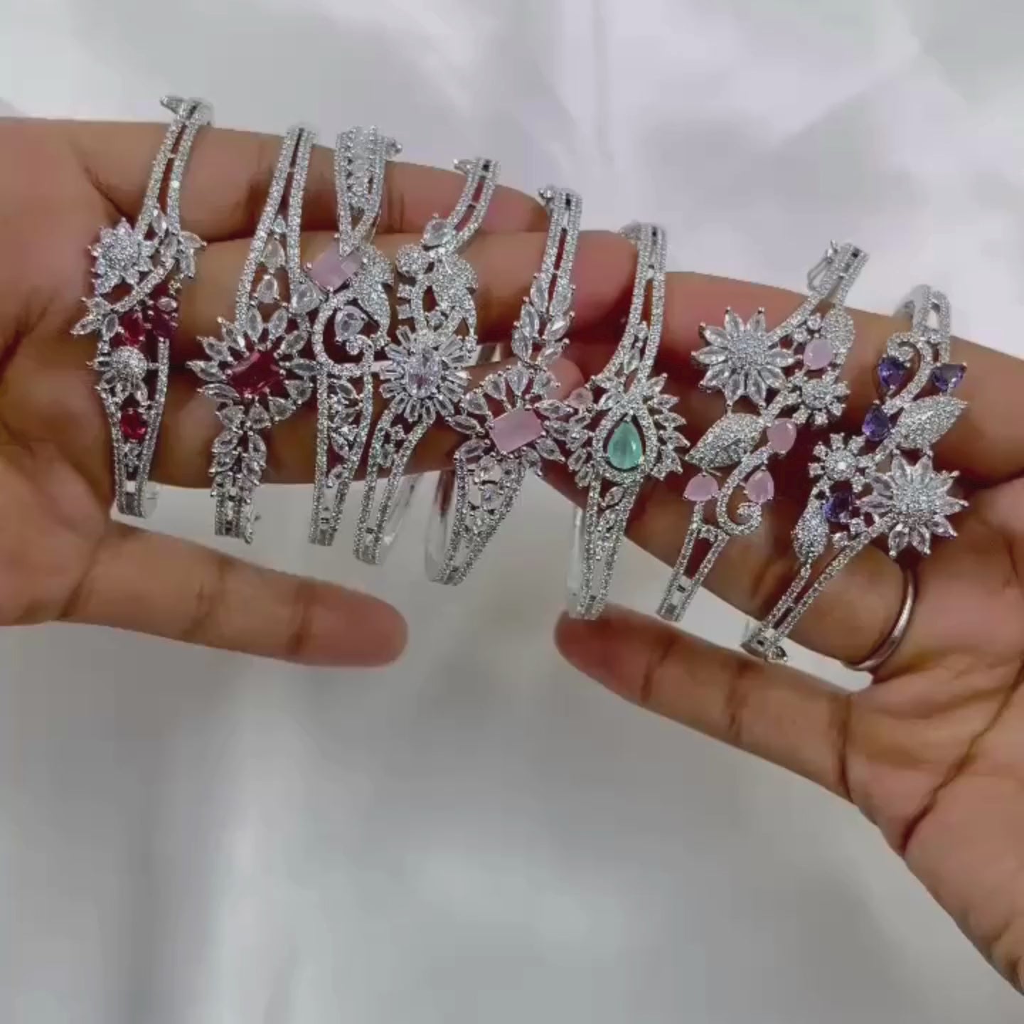 - Design: A sophisticated silver kada bracelet featuring a central oval-cut American Diamond surrounded by baguette-style accents.